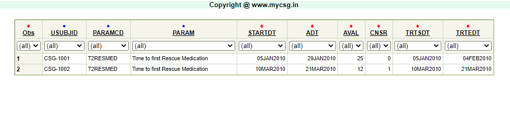 Set to 'T2RESMED when PARAM="Time to first Rescue Medication"